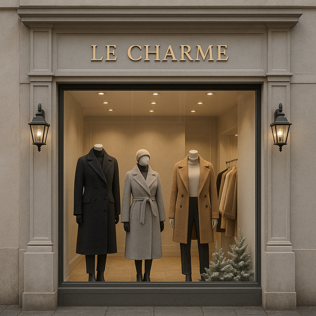 Le Charme é uma loja de moda feminina especializada em peças elegantes e atemporais para o inverno. Com um estilo clássico e sofisticado, oferece casacos, tricôs e looks em tons neutros que combinam charme europeu com conforto moderno. Ideal para mulheres que valorizam qualidade, estilo e presença em cada detalhe da estação mais charmosa do ano.